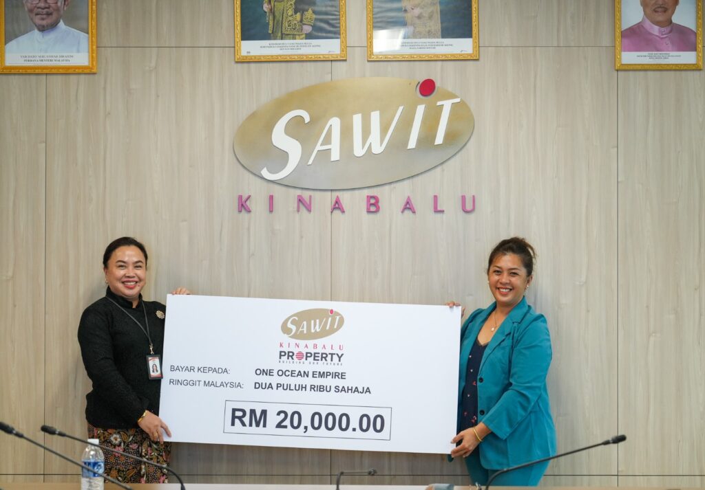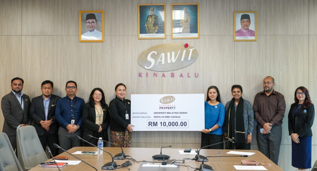 Therefore, to mark the occasion, Datin Stella Ambrose, representing Sawit Kinabalu Group, presented mock cheques worth RM10,000 to BMRI-UMS, received by Associate Professor Dr. Zarinah Waheed, and RM20,000 to One Ocean Empire, received by Founder Ms. Monica Chin, during a ceremony held at the Sawit Kinabalu’s headquarters.